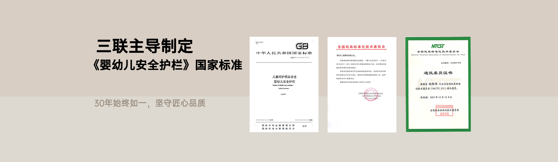 ? ? ? ? 近日,國家市場監(jiān)督管理總局、國家標準化管理委員會發(fā)布中華人民共和國國家標準公告(2025 年第 24 號),由瑞安市三聯(lián)塑料有限公司作為第四起草單位、公司產(chǎn)品經(jīng)理池俊偉擔任起草人的國家標準《兒童呵護用品安全 嬰幼兒安全護欄》(GB/T 46508-2025)正式獲批發(fā)布,并將于 2026 年 11 月 1 日起全面實施。這一標準的出臺,不僅填補了當前嬰幼兒圍欄類目缺乏統(tǒng)